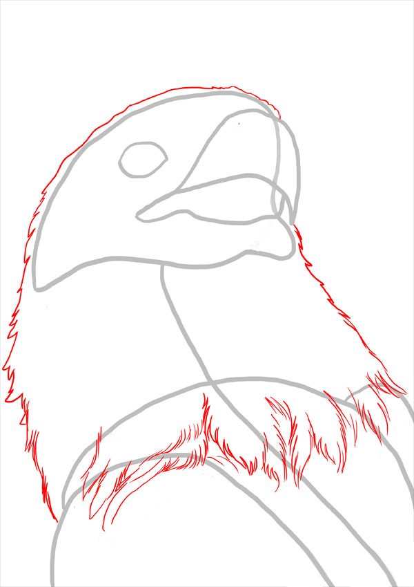 Étape 18 Finis de dessiner la tête en dessinant les plumes sur la poitrine.