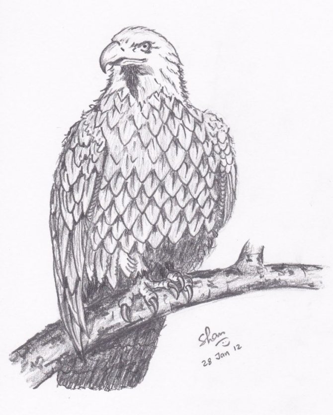 Les débutants ne devraient même pas se lancer dans le dessin du roi du ciel. Cependant, tout peintre en herbe peut dessiner le fier oiseau au crayon. Vous trouverez ci-dessous un cours de maître pour les débutants.