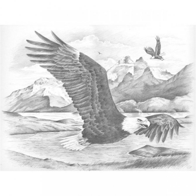 Ce dessin au crayon d'un aigle peut être rendu très pittoresque si vous passez beaucoup de temps à colorier l'oiseau. Derrière l'aigle, vous pouvez créer un arrière-plan de montagnes ou de bois pour en faire un véritable tableau.
