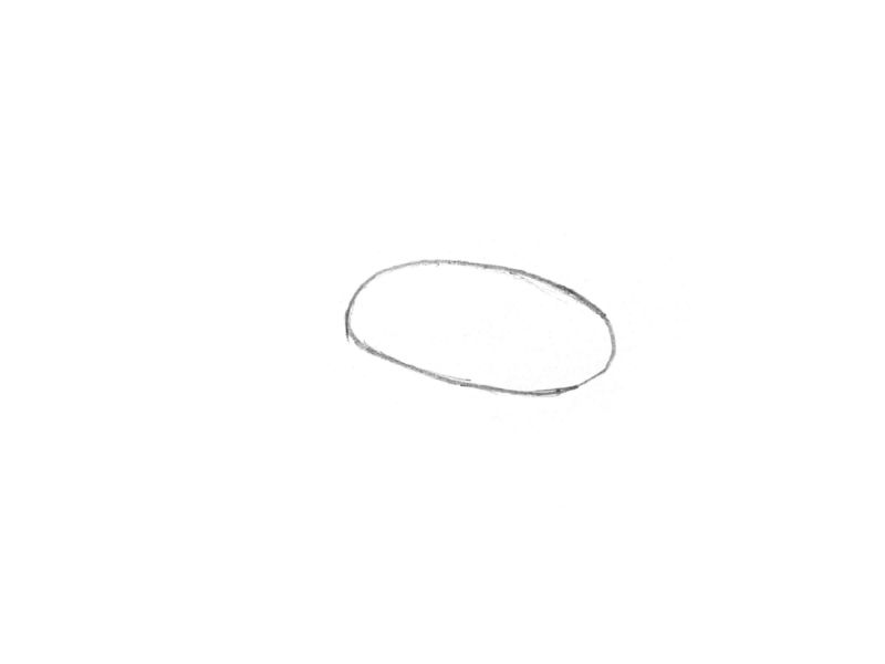 - Nous dessinons un grand ovale au centre. Au-dessus, dessinez un autre ovale plus petit, en le plaçant horizontalement au-dessus de l'ovale principal.