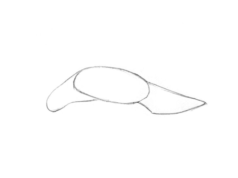 - À partir de l'extrémité de cette ligne concave, dessinez le cou et le sommet de la tête. De dessous le contour du bec.