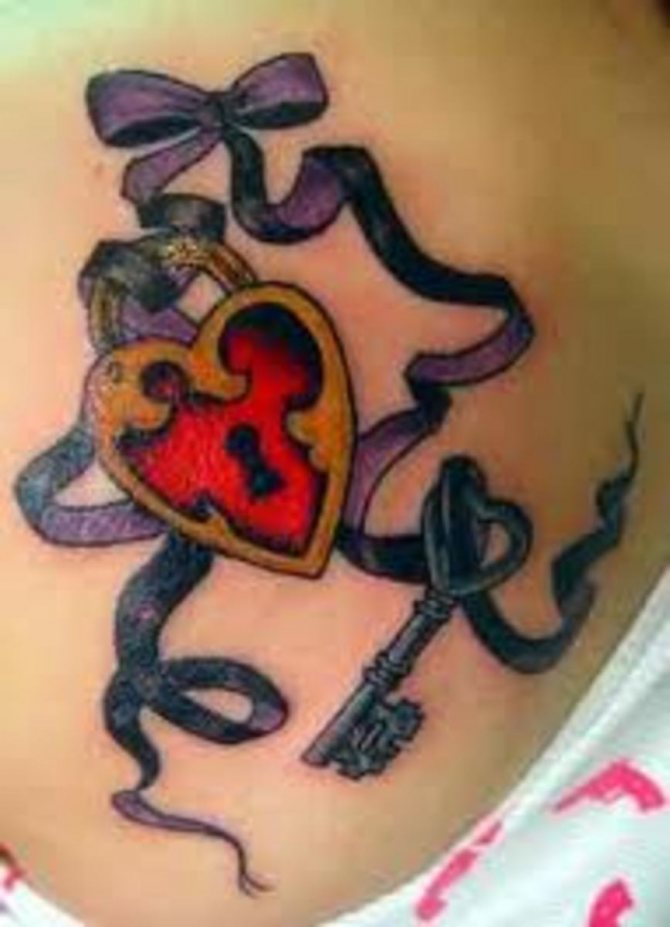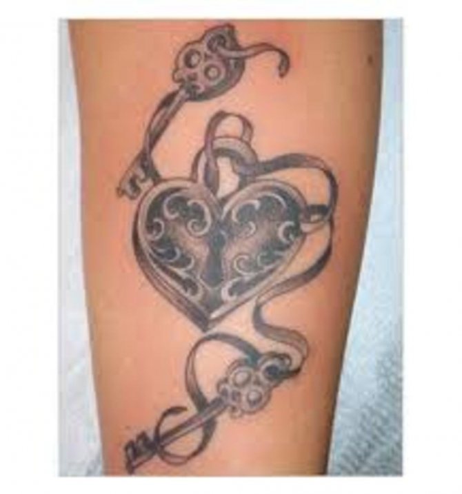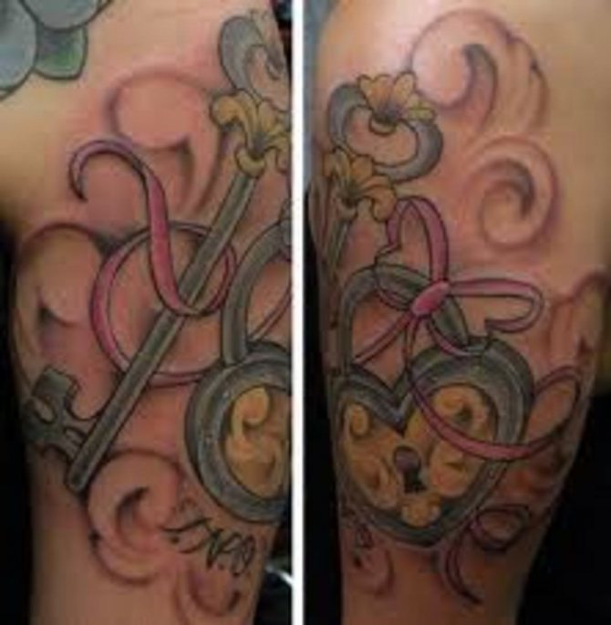 Les filles peuvent avoir des choix très intéressants en matière de tatouage et de design. La clé et la serrure ne font pas exception. À première vue, une image assez simple, sans prétention. Mais les dames fragiles mettent dans cette image une sérieuse charge sémantique. Amour, mystère, inaccessibilité, proximité - ce n'est qu'une petite partie de ce qui peut cacher leur tatouage.