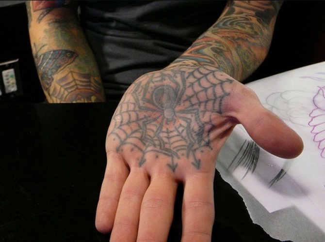 Tatouage araignée pour les hommes dénote un partenaire d'affaires compréhensif. Le porteur a une vision, il est capable de "déployer le filet".