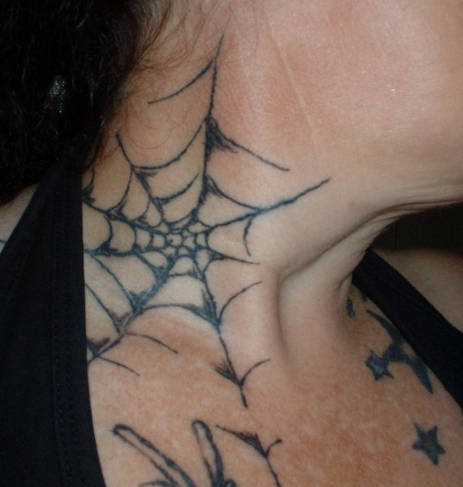 Dans un tatouage représentant une toile d'araignée, il y a plusieurs lectures. Ce n'est pas toujours lié à la culture carcérale. Une toile d'araignée est un tatouage d'une toile d'araignée - une image d'une tête d'araignée, une tête d'araignée, une brosse à cheveux, une épingle à cheveux. Dans le folklore hindou, les lignes harmonieuses d'une toile étaient considérées comme un reflet sacré de l'ordre du monde.