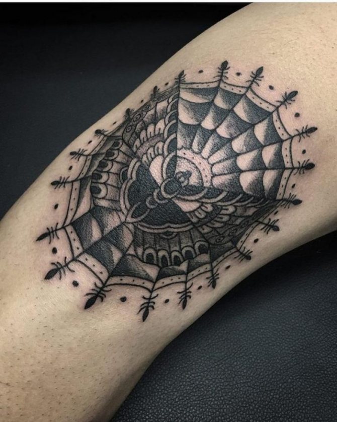 - Le tatouage de toile d'araignée peut être réalisé comme un motif autonome ou utilisé pour relier les principales parties de la "partie bras". Il est également acceptable d'utiliser une toile d'araignée pour compléter un tatouage complexe ("attrape-rêves").