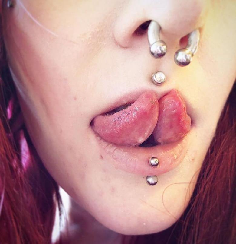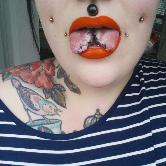 - Si l'artisan ne fait pas le travail correctement ou si vous décidez de vous couper la langue vous-même (pas question !), cela peut s'envenimer. La fente ne peut donc être faite que dans un établissement médical (un bon studio BM doit avoir la licence appropriée).