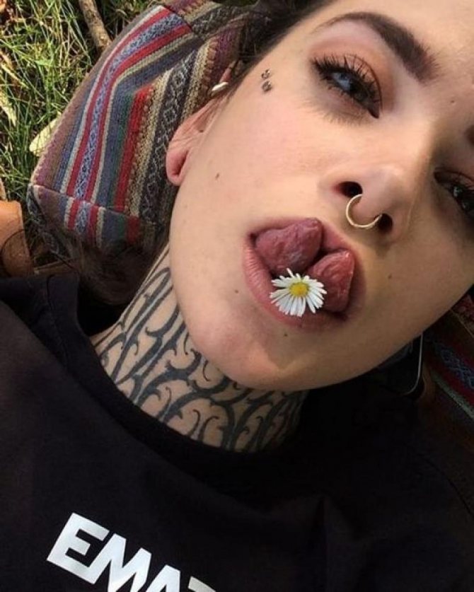 Dans diverses sous-cultures modernes, parmi lesquelles les punks, les bodybuilders, les emos et d'autres, le fait d'avoir la langue dédoublée est considéré comme une sorte d'indicateur de "coolitude" qui permet à une personne de se distinguer de la masse des gens ordinaires. La langue fendue (photo) est populaire chez les jeunes de moins de 25 ans. Parfois, cette modification est décidée pour des personnes qui n'appartiennent à aucune des nouvelles tendances, mais qui cherchent seulement à souligner leur individualité inhabituelle dans la sphère intime.