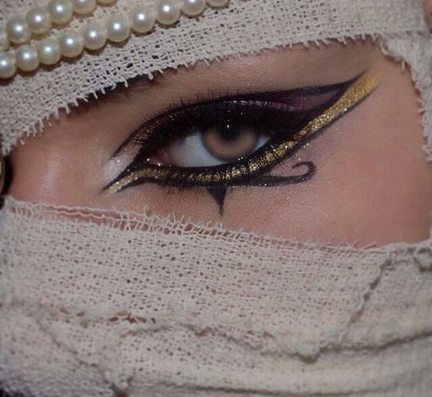 - Mettez en valeur le contour des yeux. Elle est généralement réalisée en noir, violet, vert foncé. D'autres teintes peuvent également être utilisées, notamment l'or et l'argent.