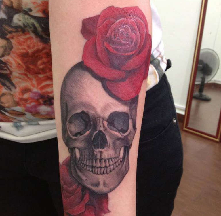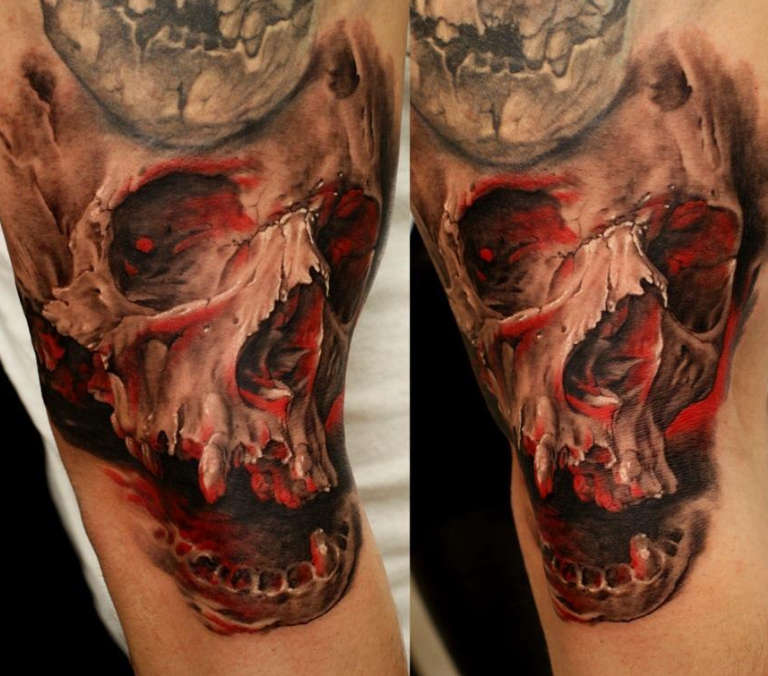 On voit souvent des crânes tatoués chez les motards. Ils soulignent ainsi leur brutalité.
