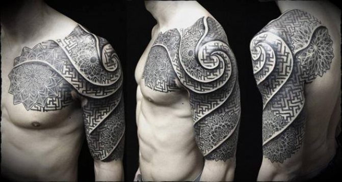 - Tribal - stylisation comme art corporel "primitif". L'image occupe entièrement une partie de la surface du corps, et le rôle clé est joué par l'ornement, qui crée un "tissu" unique de composition.
