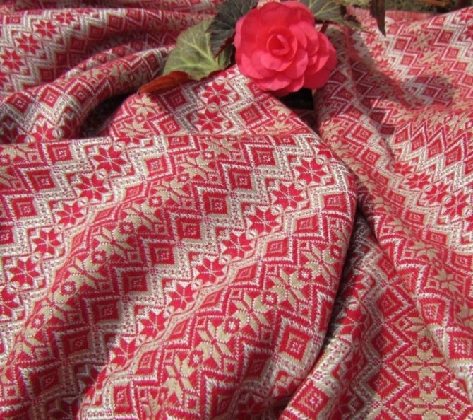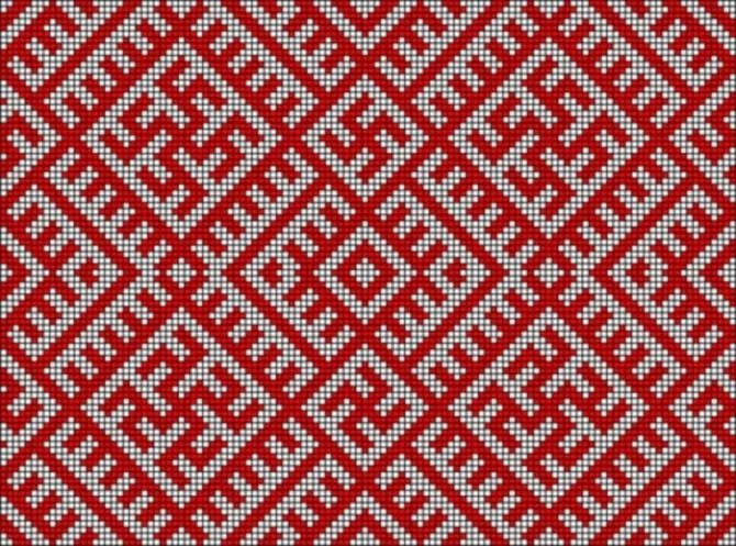 La broderie folklorique est un excellent exemple de l'utilisation de motifs slaves. La broderie à motifs était utilisée sur les serviettes, les nappes de mariage, les napperons, les rideaux, les chemises de soirée, les robes d'été en lin blanc, les vêtements d'extérieur légers, les chapeaux et les châles.