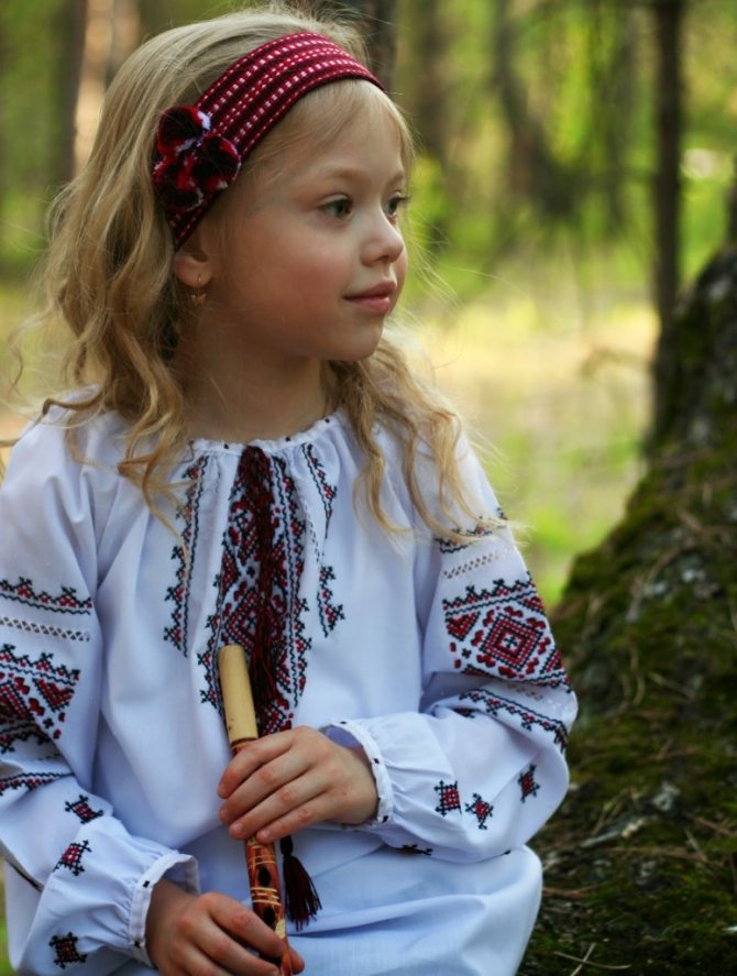 Mais la broderie d'amulettes pour les vêtements d'un enfant était déjà différente des amulettes des adultes. Tout d'abord, la couleur des broderies d'amulettes pour les enfants était toujours rouge, alors que pour les vêtements d'adultes, elle pouvait être différente. Par exemple, les femmes utilisaient souvent le noir, la couleur de la terre-mère, en plus du rouge, essayant ainsi de protéger leur utérus de l'infertilité. Les hommes, en revanche, avaient souvent besoin du bleu ou du vert comme talisman - le bleu protège de la destruction par les éléments, le vert protège des blessures. Les enfants n'avaient pas cela. On pensait que les enfants étaient étaient sous la garde et la protection de leur espèce.. Sur la chemise de la fille, il y avait des broderies sur l'ourlet, les manches et les colliers, et sur une femme mariée - sur la poitrine, le col, les broderies sur l'ourlet étaient plus larges - elles reflétaient également la nouvelle parenté et l'appartenance à la famille du mari.