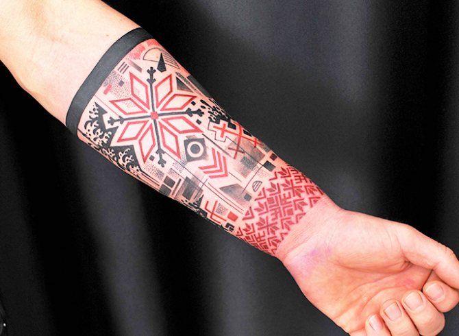 Les images slaves des dieux anciens, de l'alphabet runique, des motifs et des ornements ont des lignes d'application claires, l'harmonie et la proportionnalité de la figure, la présence de volume supplémentaire et d'ombres. Pour choisir un tatouage sur des thèmes russes anciens, il est important de trouver un maître tatoueur professionnel capable de prendre en compte toutes les nuances du style slave.