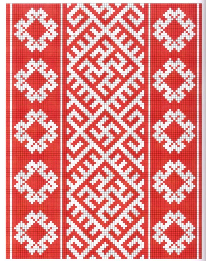 En voulant déchiffrer la signification de ce qui est inhérent aux motifs, vous devez tenir compte du fait que, selon l'emplacement des symboles de moyenne sur les vêtements, son interprétation change. Les Slaves croyaient en une division du monde en trois parties : Yav, Nav et le monde, où une place est accordée à l'homme. En conséquence, le cou et les épaules sont la lumière divine la plus élevée, l'ourlet est le monde souterrain et les manches sont le monde humain moyen.