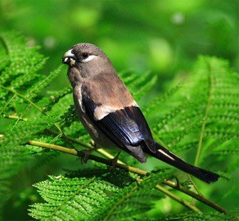 Un habitant des hautes forêts de conifères de l'archipel des Philippines et l'espèce tropicale la plus méridionale de bouvreuil à dos noir. Le plumage est principalement brunâtre avec des joues blanches et des taches blanches sur les flancs. Les femelles et les mâles ne sont pas distingués.