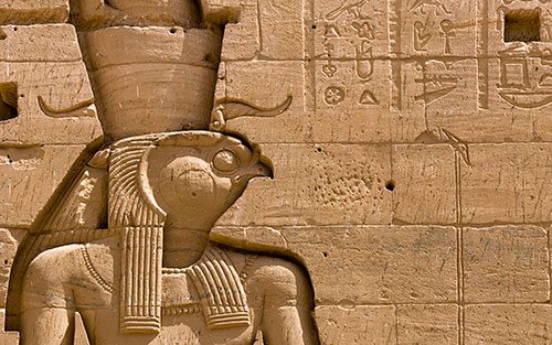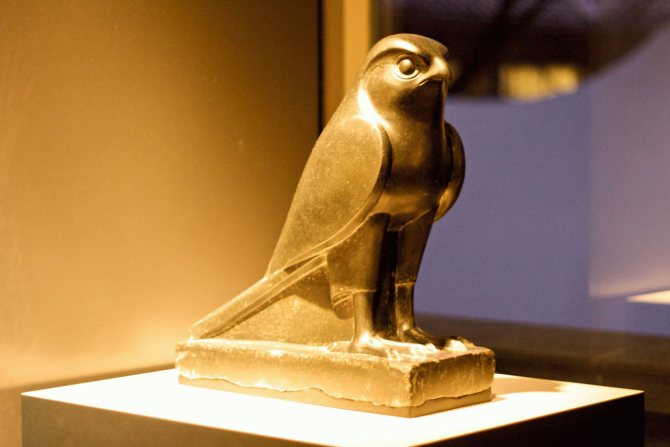 En Égypte, le faucon était le roi des oiseaux, l'oiseau du ciel, l'oiseau de la chasse. Incarnait Horus, qui apparaissait sous la forme d'un faucon ou avec une tête de faucon. Rê-Soleil levant, identifié à Horus l'Horizon pourrait aussi être avec une tête de faucon.