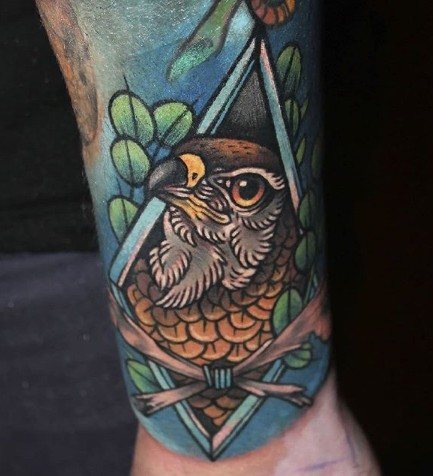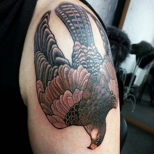 Un tatouage représentant un faucon caractérise un homme à la personnalité forte. Il est courageux et a l'âme d'un guerrier. Sa noble nature n'est pas étrangère au sens de la justice. Ses qualités de leader l'aident dans la vie à conquérir des sommets inatteignables pour les autres.