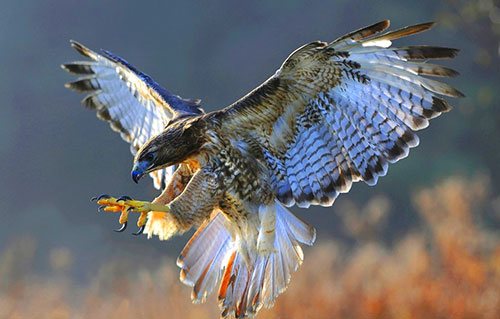 C'est le principal oiseau ailé de la planète. Le faucon est capable de voler à des vitesses allant jusqu'à 320 kilomètres par heure. C'est un chasseur vif et puissant, capable de voir sa proie à un kilomètre de distance. Le nom latin de l'oiseau est "falco", dérivé du mot "falx", qui signifie faucille. En effet, si l'on observe le faucon en vol, on peut voir la ressemblance des ailes avec une faucille.