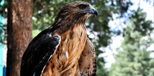 Un oiseau de proie dressé pour la chasse.