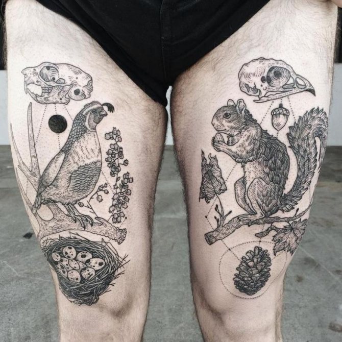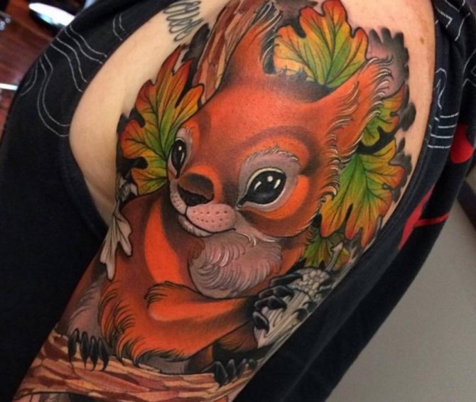 Mais la plupart des gens utilisent l'image de l'écureuil pour donner une tournure positive à leur vie et s'assurer une bonne ambiance à tout moment. Les propriétaires de ce tatouage sont d'excellents hommes de famille, les membres de leur famille n'ont besoin de rien et ils vivent toujours dans la prospérité. Ils ont eux-mêmes réussi à atteindre le succès grâce à leur travail acharné, leur persévérance et un peu de ruse.