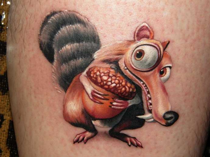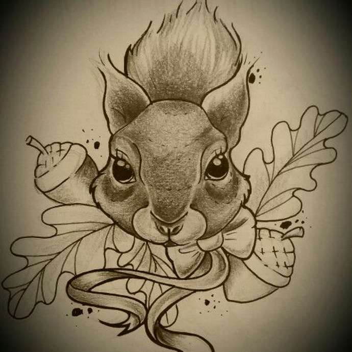 Quant au sujet du tatouage, les possibilités d'imagination sont nombreuses. Sur l'étendue de l'Internet, vous pouvez trouver beaucoup de croquis et de travaux prêts à l'emploi à partir desquels vous pouvez trouver quelques idées intéressantes pour votre propre tatouage. Aux images réalistes s'ajoutent des sujets vraiment originaux. On tombe souvent sur un sketch très mignon avec des écureuils de dessin animé (notamment l'écureuil populaire de "l'âge de glace") avec de grands yeux gentils. Il existe des œuvres très drôles avec des écureuils anthropomorphes sur des skateboards, portant des vêtements amusants. Il y a aussi des tatouages plutôt sinistres, comme un écureuil zombie mangeur de cerveau.