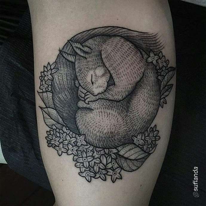- Le Linework est considéré comme une ramification du Dotwork, mais il permet de transmettre parfaitement l'image d'un écureuil sur la peau en exploitant l'image linéaire du dessin.