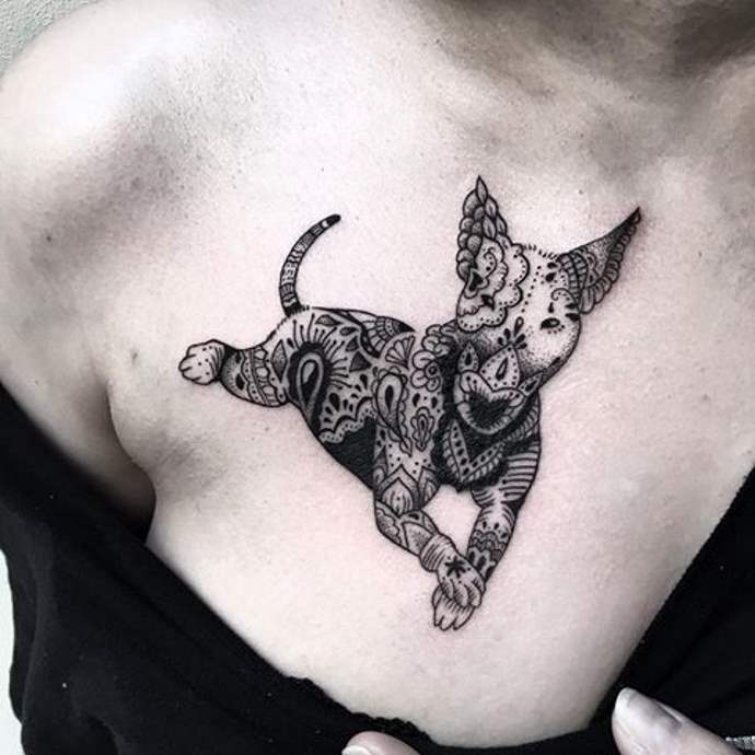 Et, bien sûr, le tatouage est un signe de gentillesse et d'amour pour les petits. Un symbole de la protection des animaux. Souvent, ces tatouages sont portés par des personnes en souvenir de leur compagnon à quatre pattes.