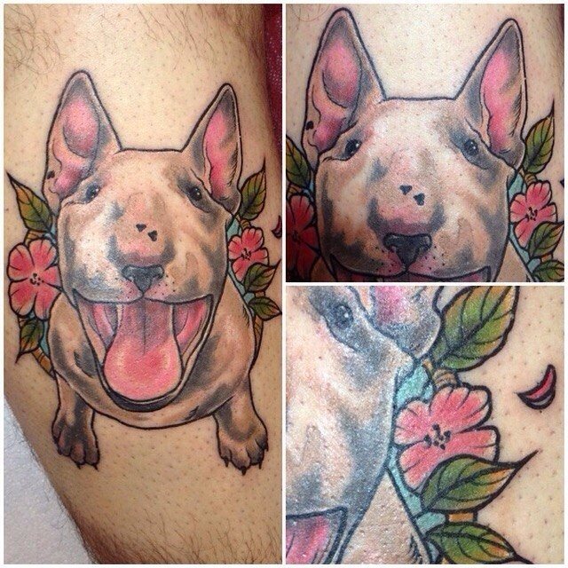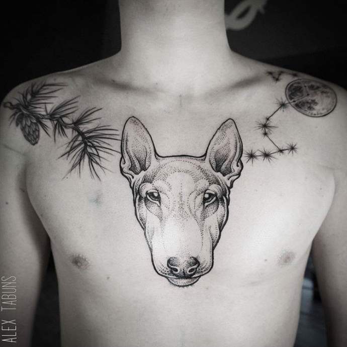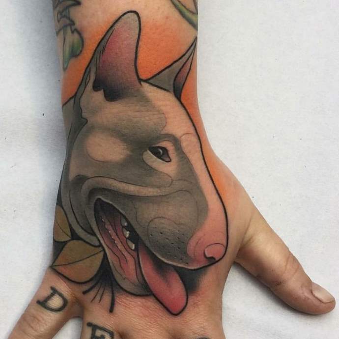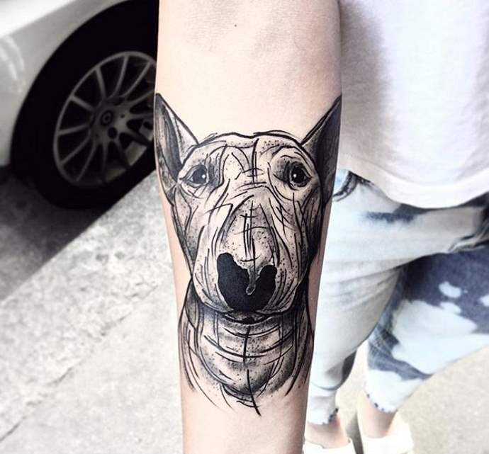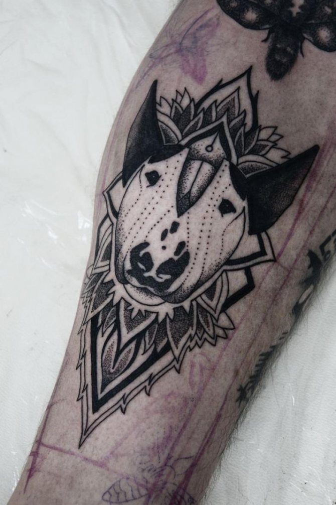 Donc, plus en détail. Que dit ce tatouage ? Un bull terrier n'est pas un chien facile. C'est par là qu'on commence. Certaines personnes y voient un symbole de force et d'agressivité. D'autres le considèrent comme un grand exemple de bonne éducation. Et pour certains, un bull terrier est tout simplement un animal de compagnie adoré. Chaque point de vue a le droit d'exister, bien sûr. Et chacun d'entre eux peut être traduit en une magnifique forme d'art corporel.