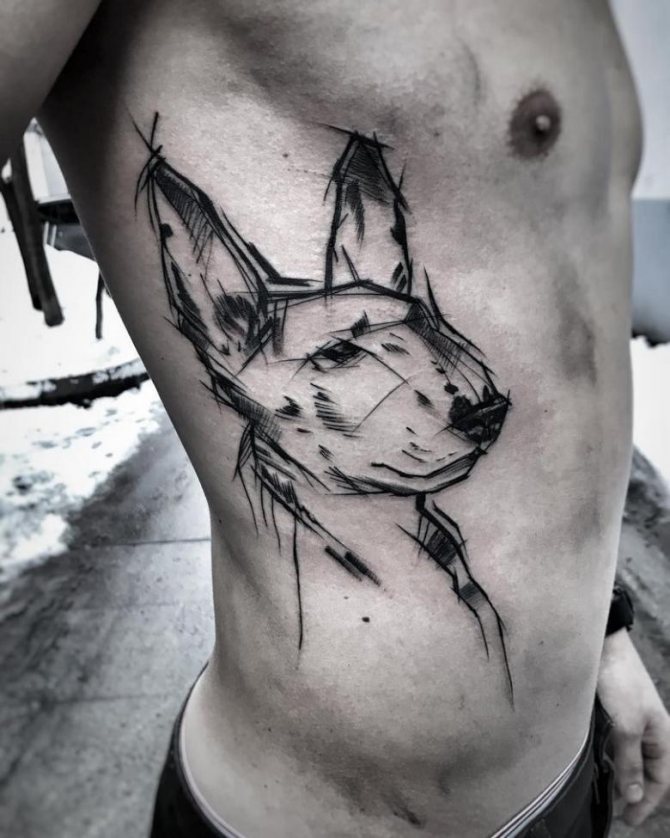 La signification générale et évidente d'un tel tatouage est l'intrépidité et le courage. Volonté de se battre jusqu'au bout et de gagner à tout prix. Mais malgré toute la férocité du bull terrier qui se bat pour ses "animaux de compagnie", c'est un ami doux et attentionné. Une signification plus rare est le bull terrier qui traque son ennemi. Il signifie une volonté d'aller "jusqu'au bout" de son objectif. L'expression du museau du chien est importante. Il peut s'agir d'un sourire féroce ou d'un joli sourire bon enfant. En conséquence, cela reflète l'attitude du porteur du tatouage vis-à-vis du monde extérieur. Il peut se montrer ouvert et bon enfant envers les autres, ou au contraire être initialement peu sociable, voire agressif. Quoi qu'il en soit, si vous décidez d'énerver un bull terrier, préparez-vous à un "dernier combat".