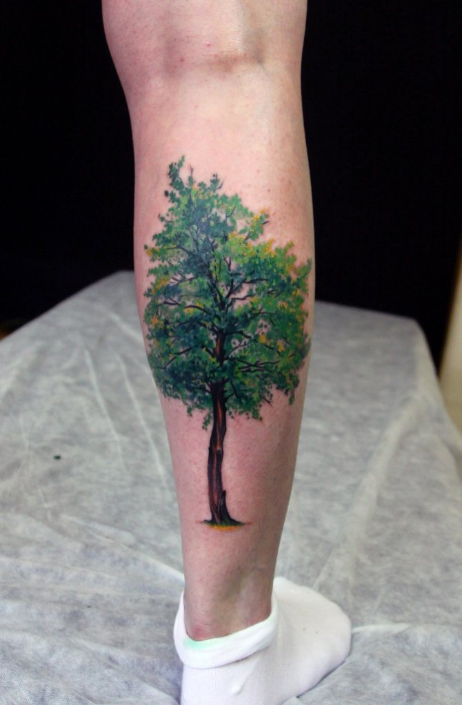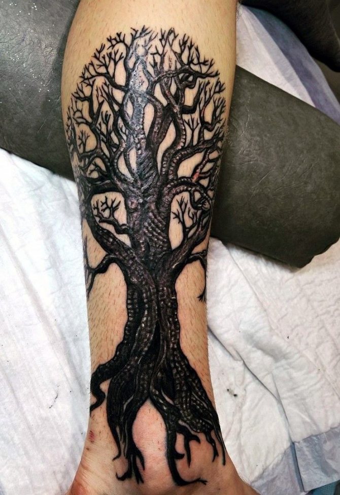 - L'infini de la vie. Le tatouage d'un arbre sur une jambe ou toute autre partie du corps indique une certaine vision philosophique. On croit que la mort n'est pas la fin, mais seulement une étape dans un cycle sans fin de renaissance. L'énergie qui nous donne la vie ne vient pas de nulle part et ne va nulle part. L'âme humaine fait partie de l'univers infini, elle est aussi éternelle que l'univers lui-même.