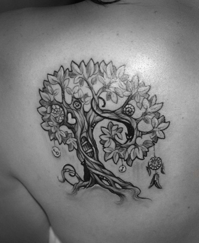 L'un des types de tatouages les plus populaires est considéré comme étant arbre de vie. Une telle image signifie la naissance de la vie, le lien entre Dieu et l'homme. C'était l'arbre de vie qui poussait dans le jardin d'Eden. Lorsqu'Eve a cueilli le fruit défendu, le chemin vers la plante lui était fermé, ainsi qu'à Adam.