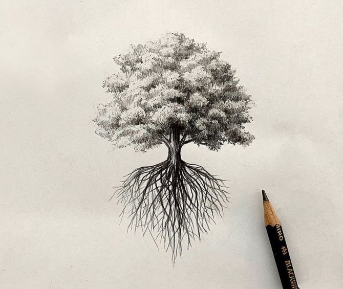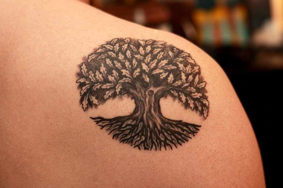 Lorsque l'arbre de vie est tatoué, les racines sont dessinées très soigneusement, car chaque détail est de la plus haute importance.