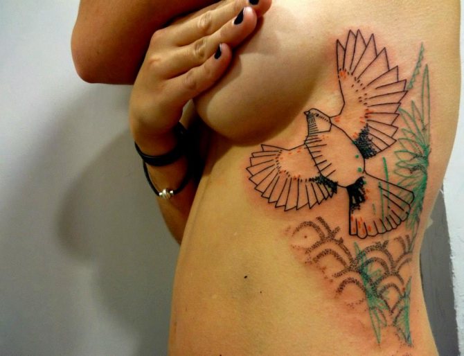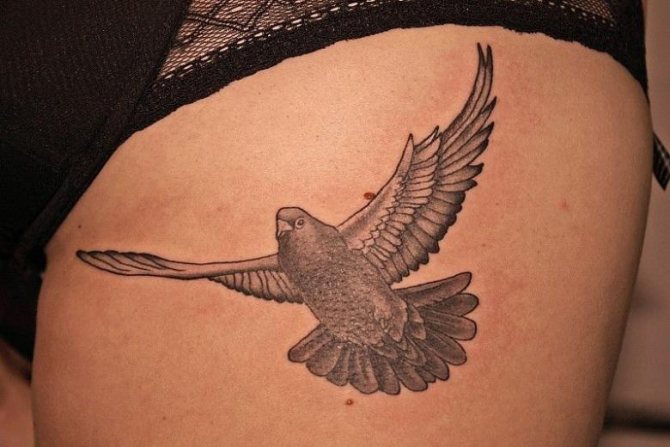 Tatouage d'une colombe C'est l'un des tatouages populaires avec des oiseaux. L'image de l'oiseau a toujours été associée à la liberté et à l'inaccessibilité, à la pureté spirituelle et à la pureté. C'est pourquoi l'image des oiseaux est devenue si populaire dans la culture du tatouage, car elle a un symbolisme positif et un contenu sémantique prononcés. Bien entendu, la prédominance de ces significations ou d'autres dépend du type d'oiseau représenté sur l'image.