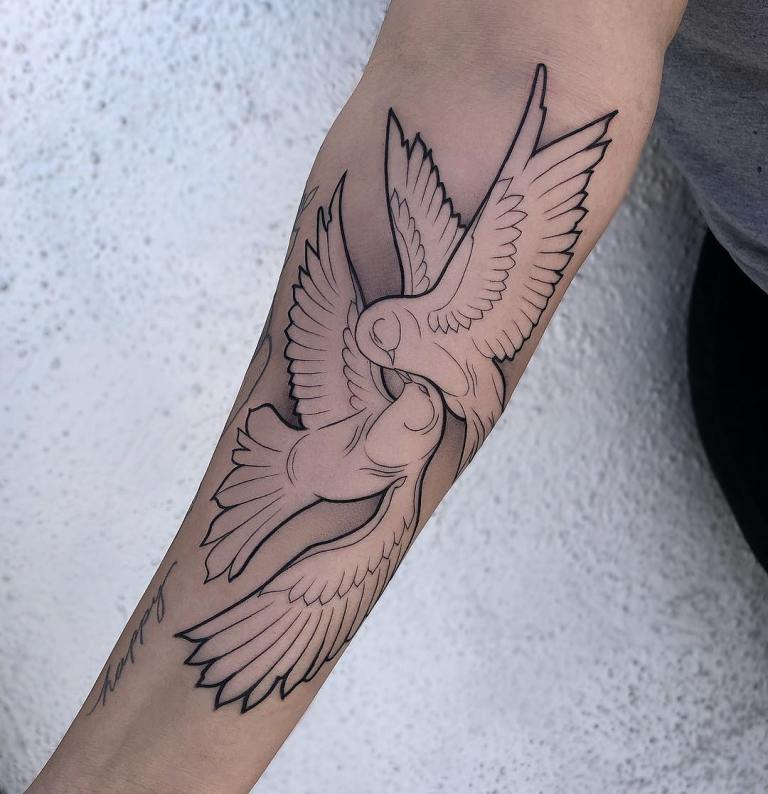 - Les amoureux choisissent souvent un tatouage représentant une paire de colombes pour souligner la profondeur de leurs sentiments et le placent sur leur poignet.