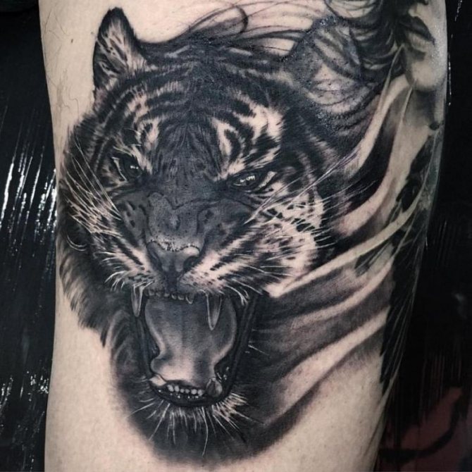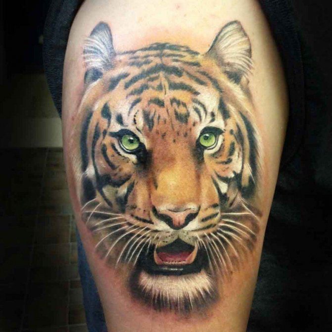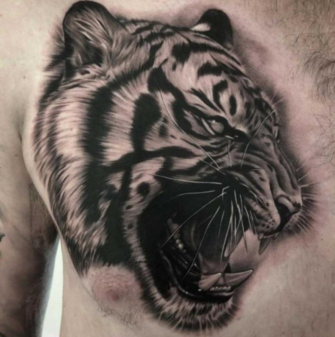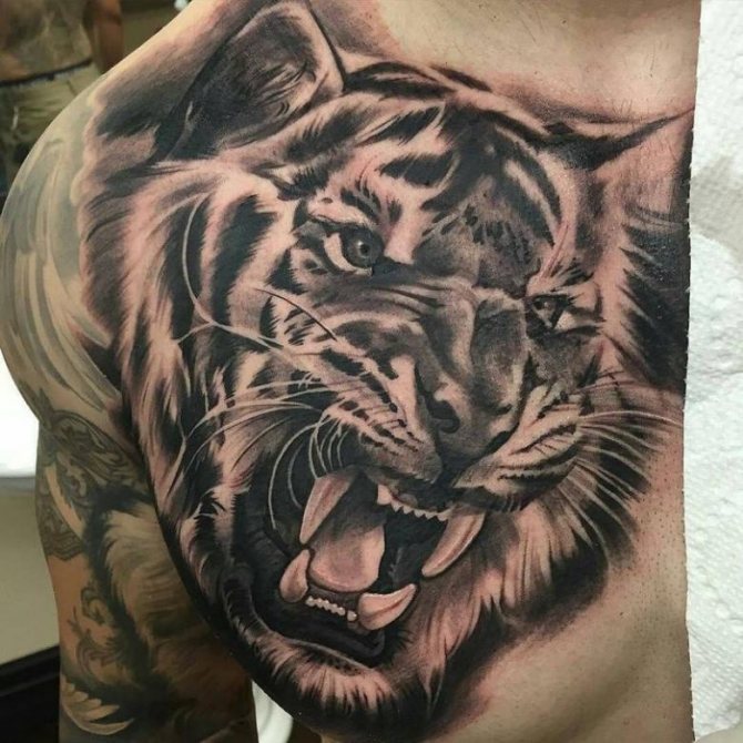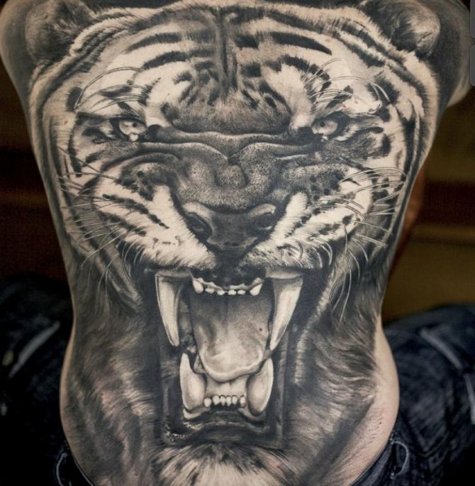 Les premiers à mettre des dessins avec des tigres sur le corps ont été les Chinois et les Japonais. À l'origine, le tatouage était synonyme de passion et de sensualité. En Chine, la bête est un gardien contre les mauvais esprits. Autrefois, les images d'un prédateur étaient accrochées aux murs de la chambre d'une femme enceinte pour protéger l'enfant de l'influence des mauvais esprits. En Asie, le roi des bêtes n'est pas un lion ou un ours, mais un tigre.