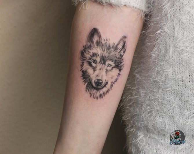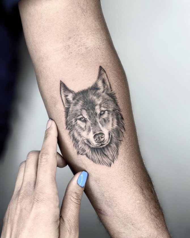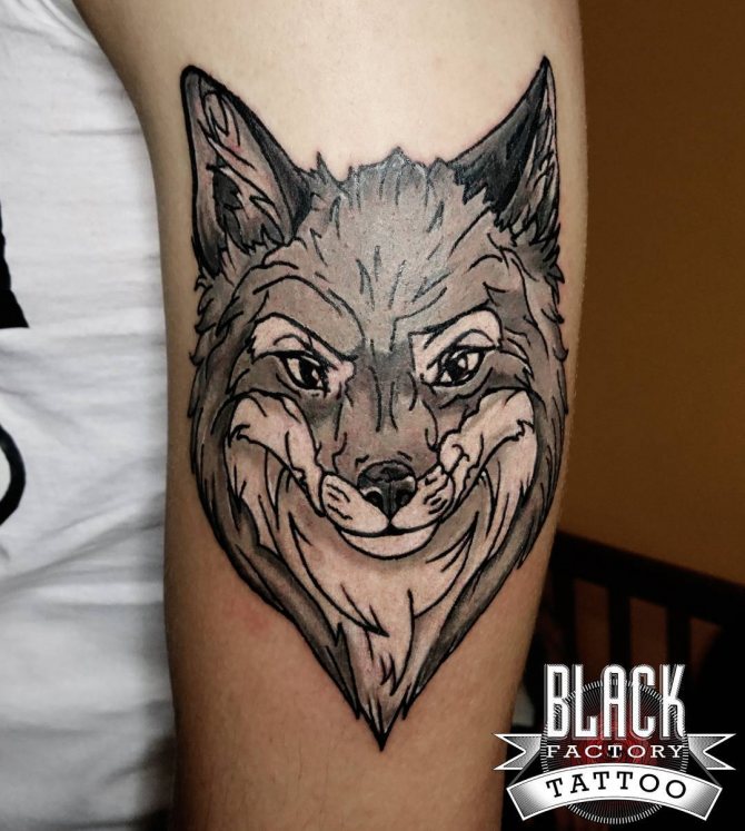 Le museau calme et sans sourire d'un loup est un symbole plutôt romantique, porté sur le corps par les femmes et les hommes. Le loup à museau plein ou le loup de trois-quarts dénote la sagesse et le développement spirituel, qui cherche à l'homme. Le petit dessin d'un loup est placé sur une main, pour les variantes volumétriques choisissez une cuisse ou un sein.