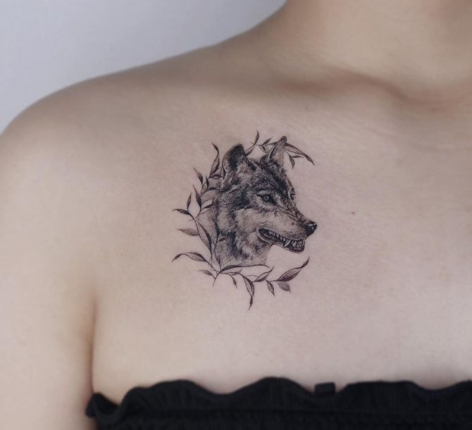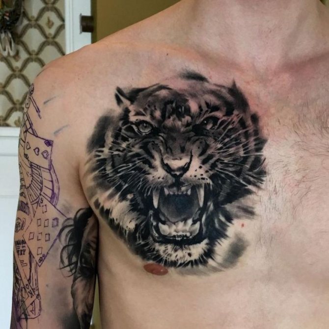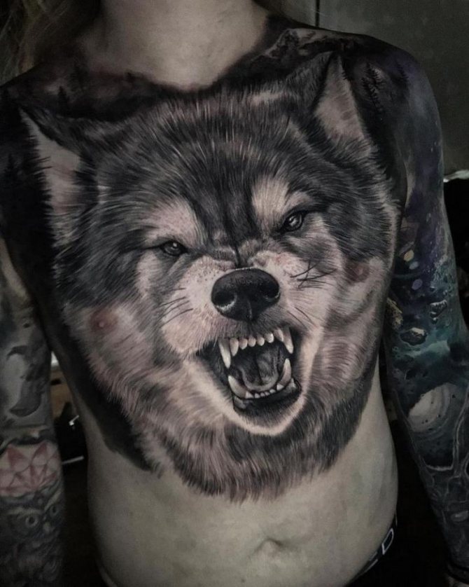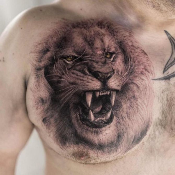 2Sur la poitrine. Le museau d'un animal sera magnifique. Les tatouages dans cette zone ont une signification sacrée, car ils sont situés près du cœur ;