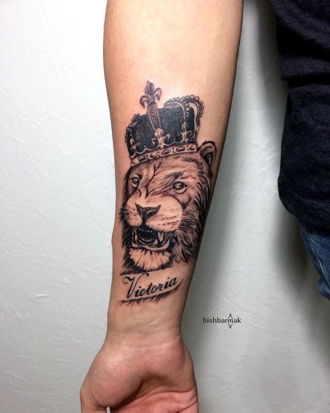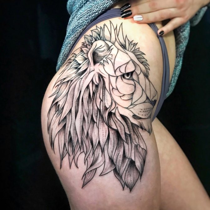 Le roi de toutes les bêtes est souvent marqué d'un rictus dans les tatouages. Le tatouage du lion représente l'honneur, l'autorité, l'ambition et le pouvoir. Si un lion est représenté avec un sourire, il s'agit d'un roi très en colère. Dans ce personnage coexistent parfaitement le courage et la force d'âme, les habitudes prédatrices et l'impartialité, la confiance en soi et la sagesse.