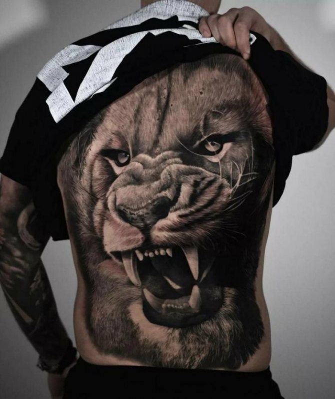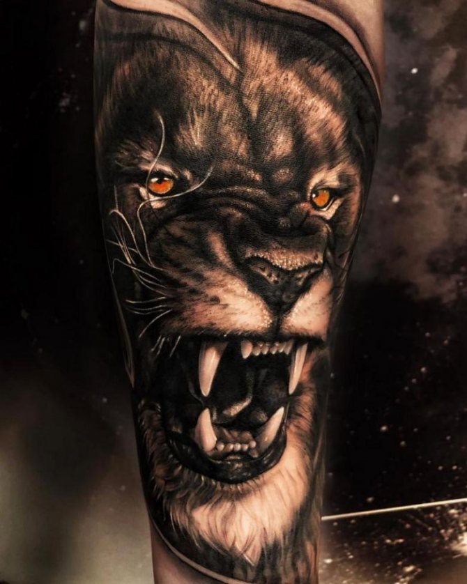 Les personnes robustes qui ne se fient pas à l'opinion des autres choisissent un tatouage avec ce type d'image. L'animal majestueux, fier, extraordinairement beau, mais extrêmement dangereux, est associé à une personne aux caractéristiques typiques.