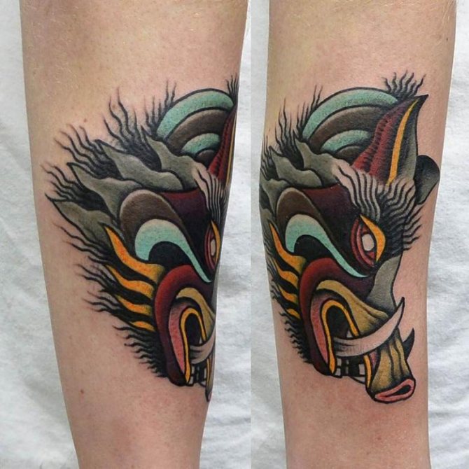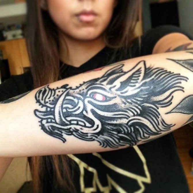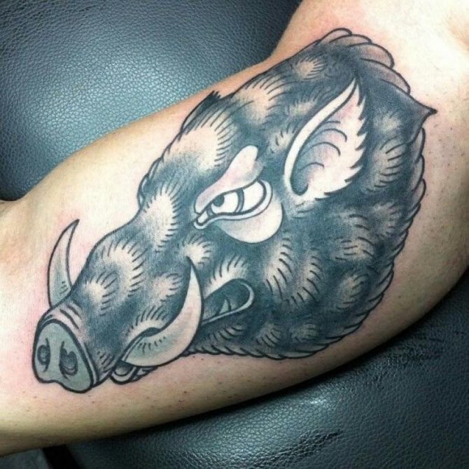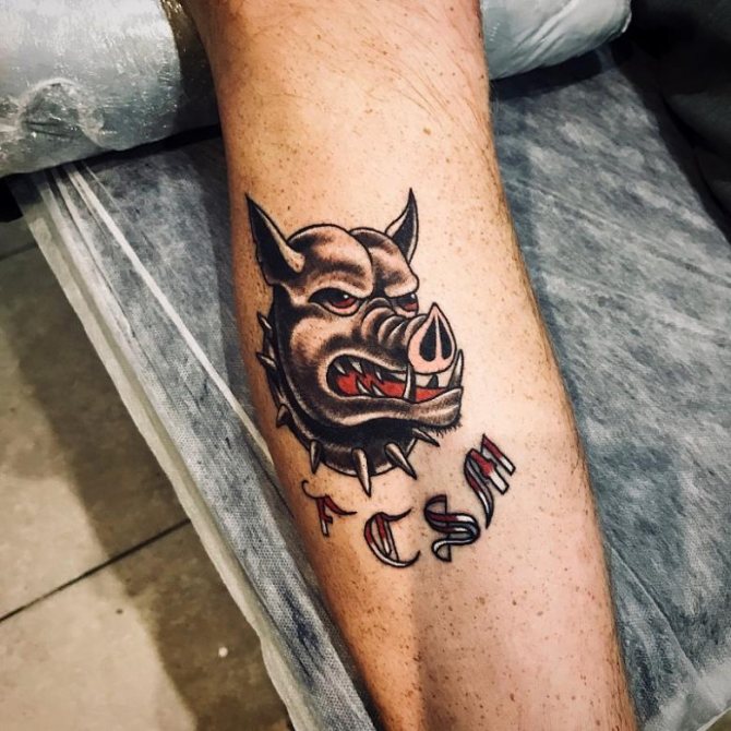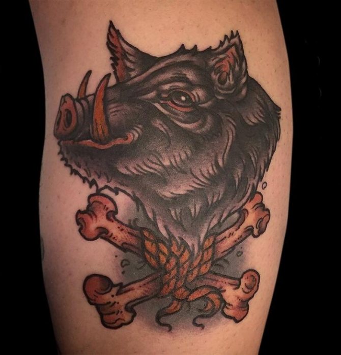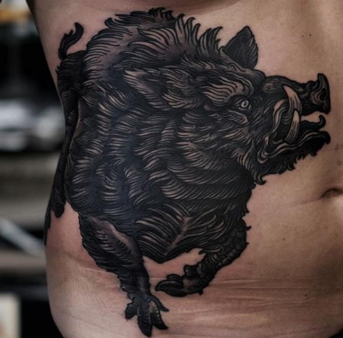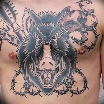 - Le tatouage, où l'image d'un sanglier est présentée de manière stylisée, inflige également les hommes, les filles préfèrent les tatouages qui ont une signification différente et un aspect plus esthétique.