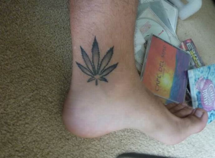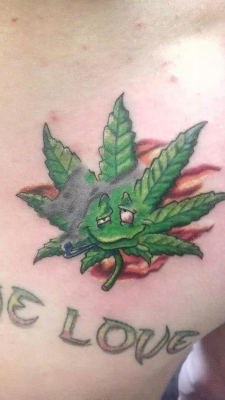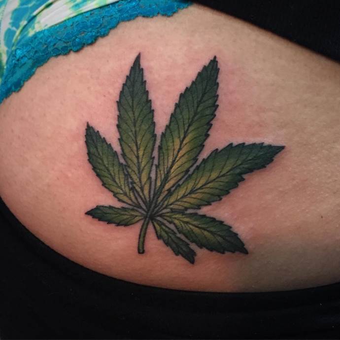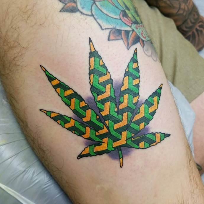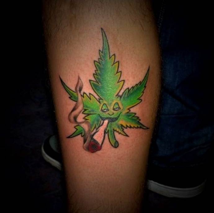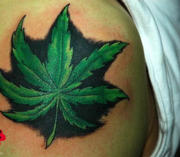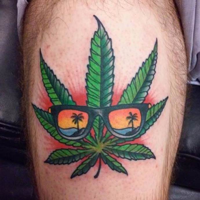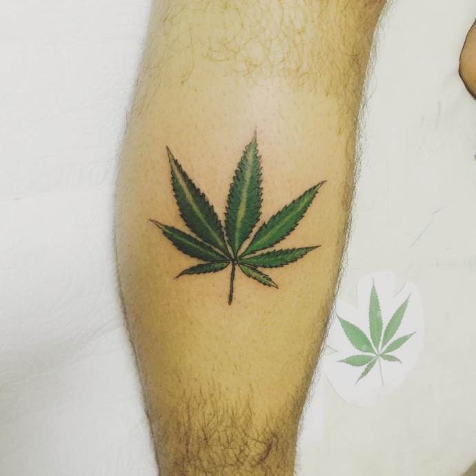 Sur le corps des hommes, une feuille de cannabis signifie que le porteur consomme de l'herbe. Cette figure est le plus souvent présente dans la collection de tatouages des musiciens et des artistes. Le porteur peut prêcher une vision rastamanienne de la vie.