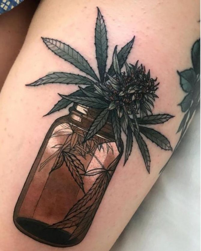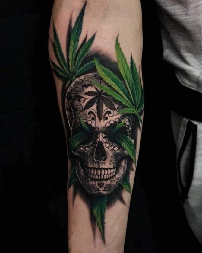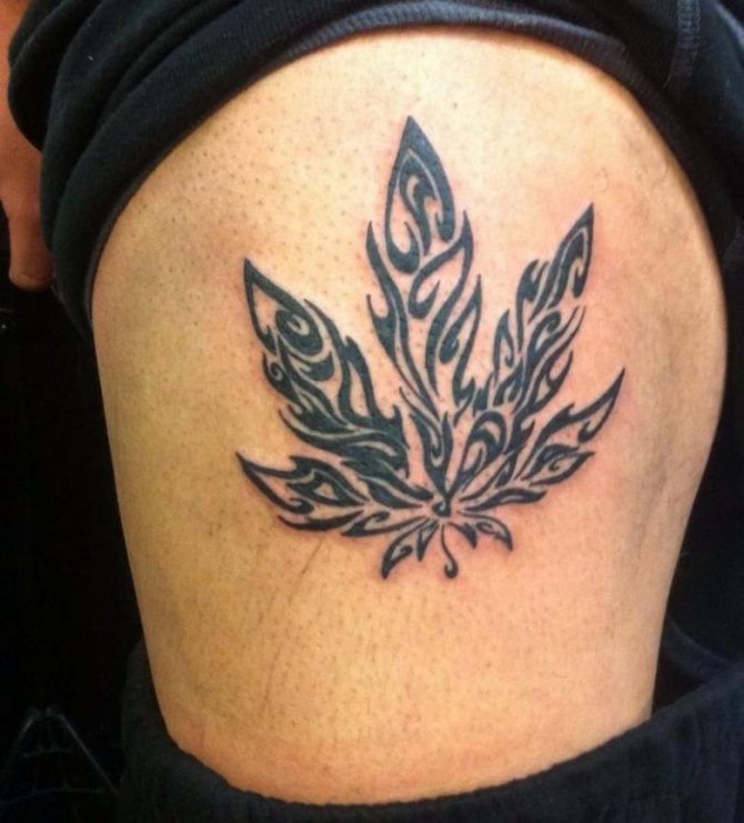 Le tatouage du cannabis a plusieurs interprétations différentes. Certains sont venus avec la culture rasta. Dans cette religion, la feuille de chanvre était considérée comme un don sacré de Jha, qui parlait aux adeptes par le biais de visions.