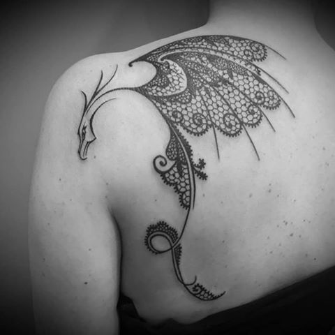 Le dragon est devenu un élément incontournable de la plupart des tatouages et la dentelle n'est pas en reste non plus. Le dragon en dentelle est assez intéressant lorsqu'il est dessiné correctement. Une bonne idée pour le rendre encore plus fantastique est d'en mettre sur tout le dos ou la poitrine.