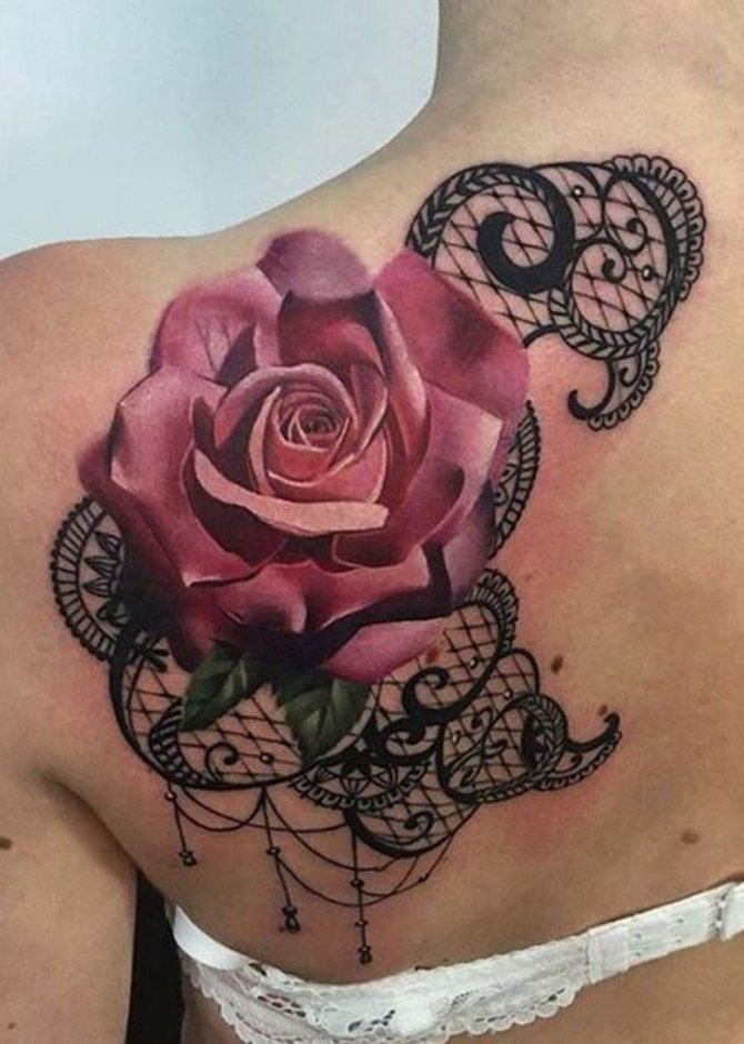Ce type de tatouage est composé de dentelle et d'une rose (ou toute autre fleur). Il peut être dessiné de n'importe quelle manière ou couleur, à condition qu'il y ait de la dentelle et une fleur sur le tatouage. Cependant, le motif général consiste en une fleur très colorée et une dentelle noire avec des liens en dentelle autour de la tige de la fleur.