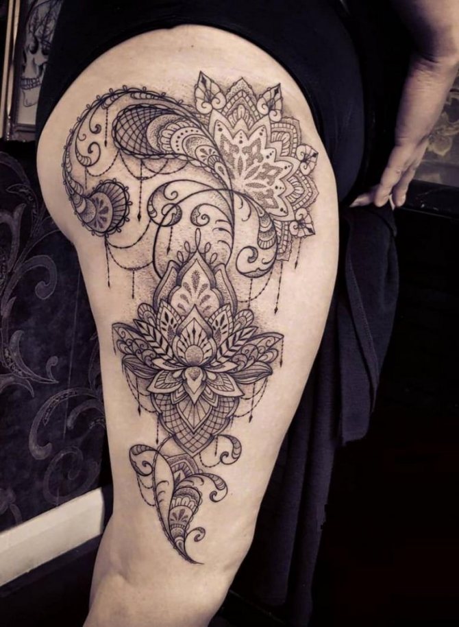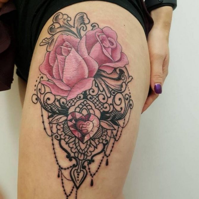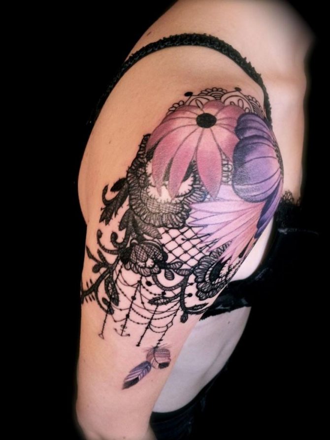 - la facilité de prise de décision. Quoi qu'on en dise, la dentelle est une chose plutôt frivole. Avec une certaine combinaison d'éléments de tatouage, l'image peut indiquer que sa maîtresse est sujette à des sautes d'humeur, facile à vivre, ne réfléchit pas à ses actes.