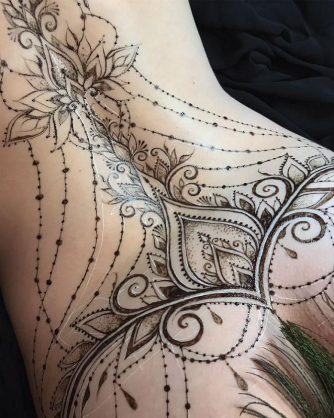 Le tatouage sur la hanche pour les filles (les photos sont représentées par différentes options) implique un tel thème de motifs :