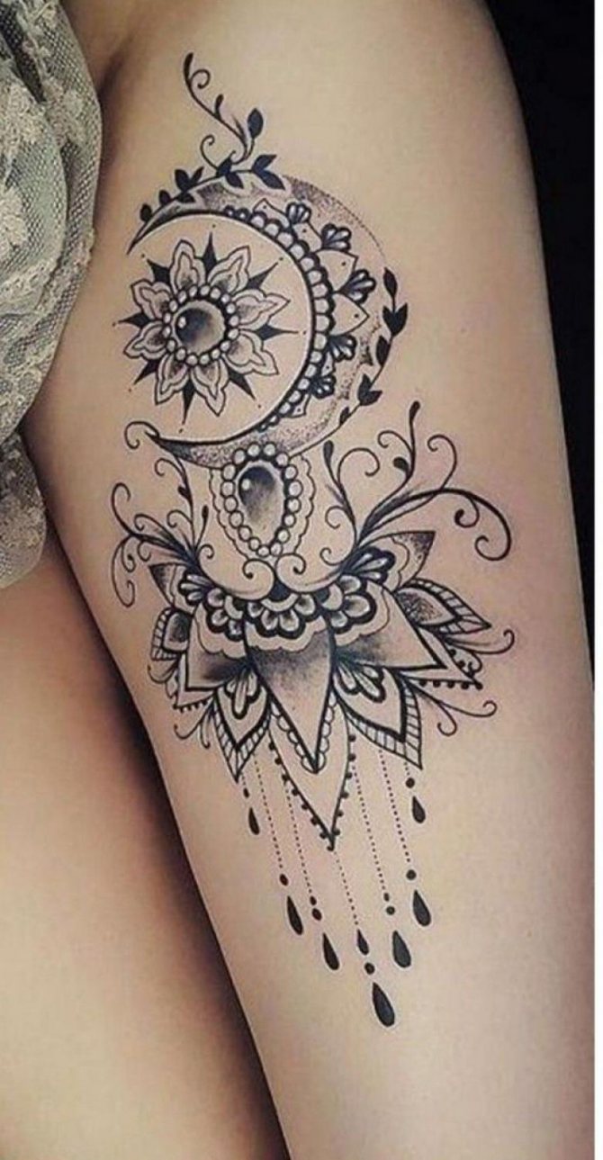Je me suis fait tatouer une jarretière en dentelle sur ma cuisse il y a longtemps. J'y ai déjà apporté quelques ajouts et perfectionnements. Il est fait en rouge et semble très sexy. Mon homme a particulièrement aimé le tatouage. Maintenant, je pense me faire un autre tatouage, mais aussi dans un style dentelle pour accentuer la féminité. Bien que la jarretière ait l'air plutôt audacieuse, son exécution en style ajouré ajoute à sa tendresse, à sa douceur.