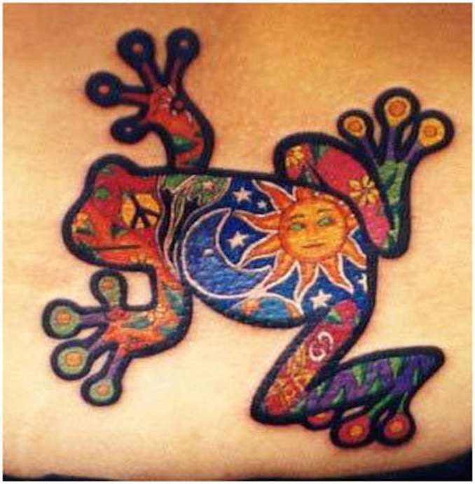 Ce symbole peut revêtir un sens humoristique ou, à l'inverse, un sens profondément philosophique. Ceux qui croient aux propriétés magiques de la grenouille l'appliquent dans l'espoir qu'elle apporte la prospérité. D'autres, des personnes au tempérament joyeux et à la vision large, aiment simplement l'aspect de la photo. La signification du tatouage de grenouille pour les filles dépend des attributs représentés à côté d'elle.