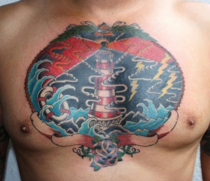 Depuis l'Antiquité, les membres des professions maritimes ont associé le phare à l'espoir, à l'aide et à un retour réussi à la maison. Pour les marins et les pêcheurs, l'image sur leurs vêtements était une sorte d'amulette qui les protégeait des problèmes et des dangers pendant leurs voyages. Ces hommes ont tatoué le phare en signe d'assurance qu'ils retrouveraient leur chemin. Ne pas respecter cette construction était de mauvais augure pour le voyage, non seulement pour un marin, mais pour tout l'équipage. Un tatouage de phare sur l'avant-bras ou l'épaule représentait généralement un navire à quatre mâts et l'inscription "Away from the rocks". Une telle image symbolisait la sécurité et la fiabilité.