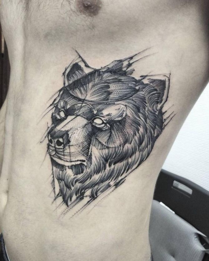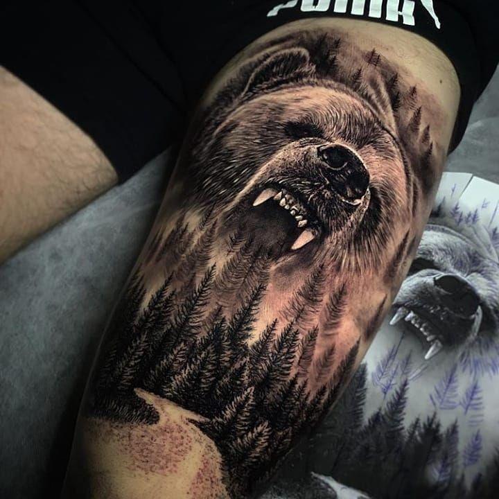 L'ours est un animal de grande taille, ce qui signifie que le dessin du tatouage ne peut pas être petit non plus. L'emplacement d'un tel tatouage doit être choisi avec soin. Il doit s'agir d'un endroit plat où l'on peut appliquer une belle photo avec tous les détails. Les options les plus appropriées sont :